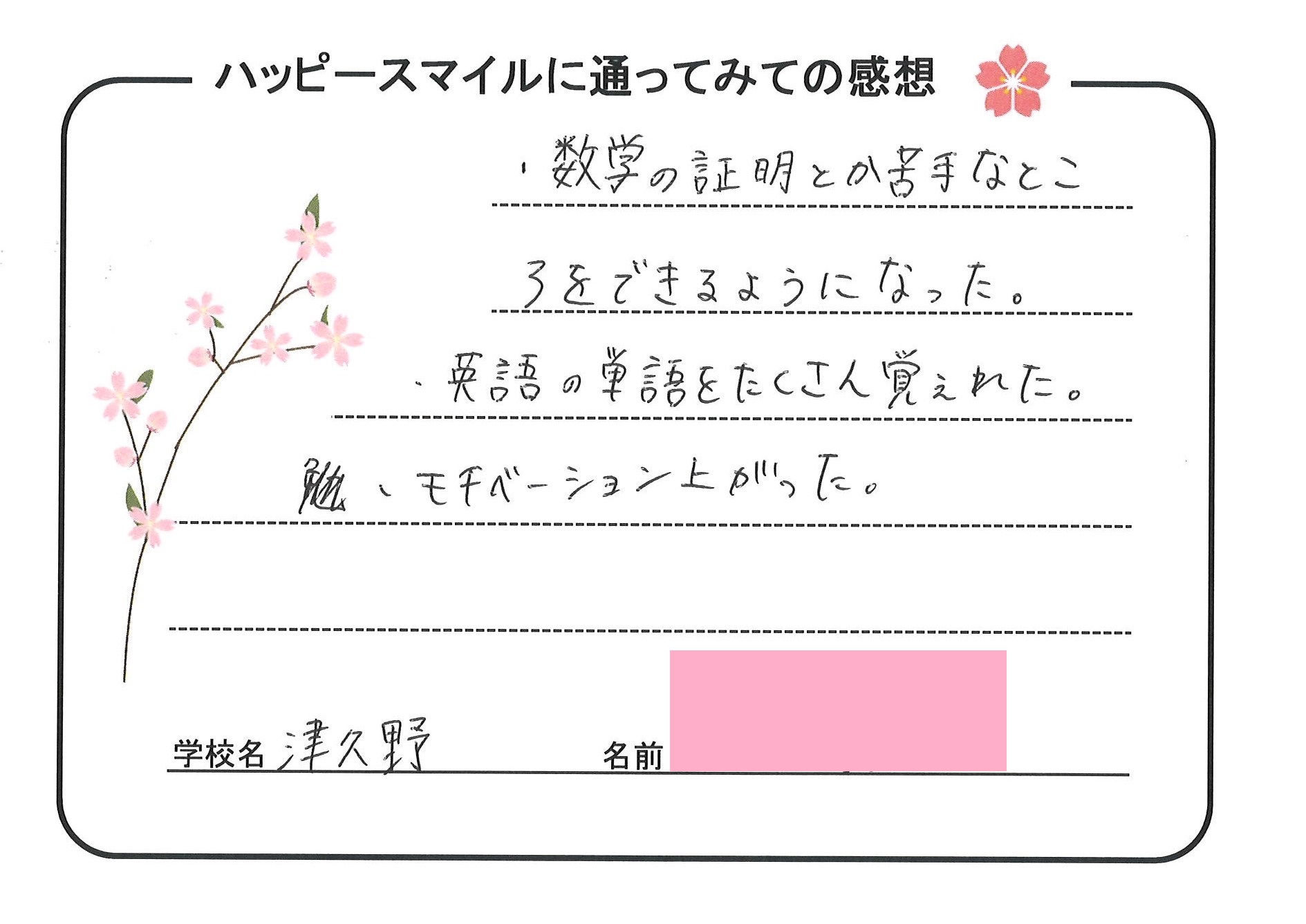 個別指導のハッピースマイルにお寄せ頂きました生徒様の声をご紹介!