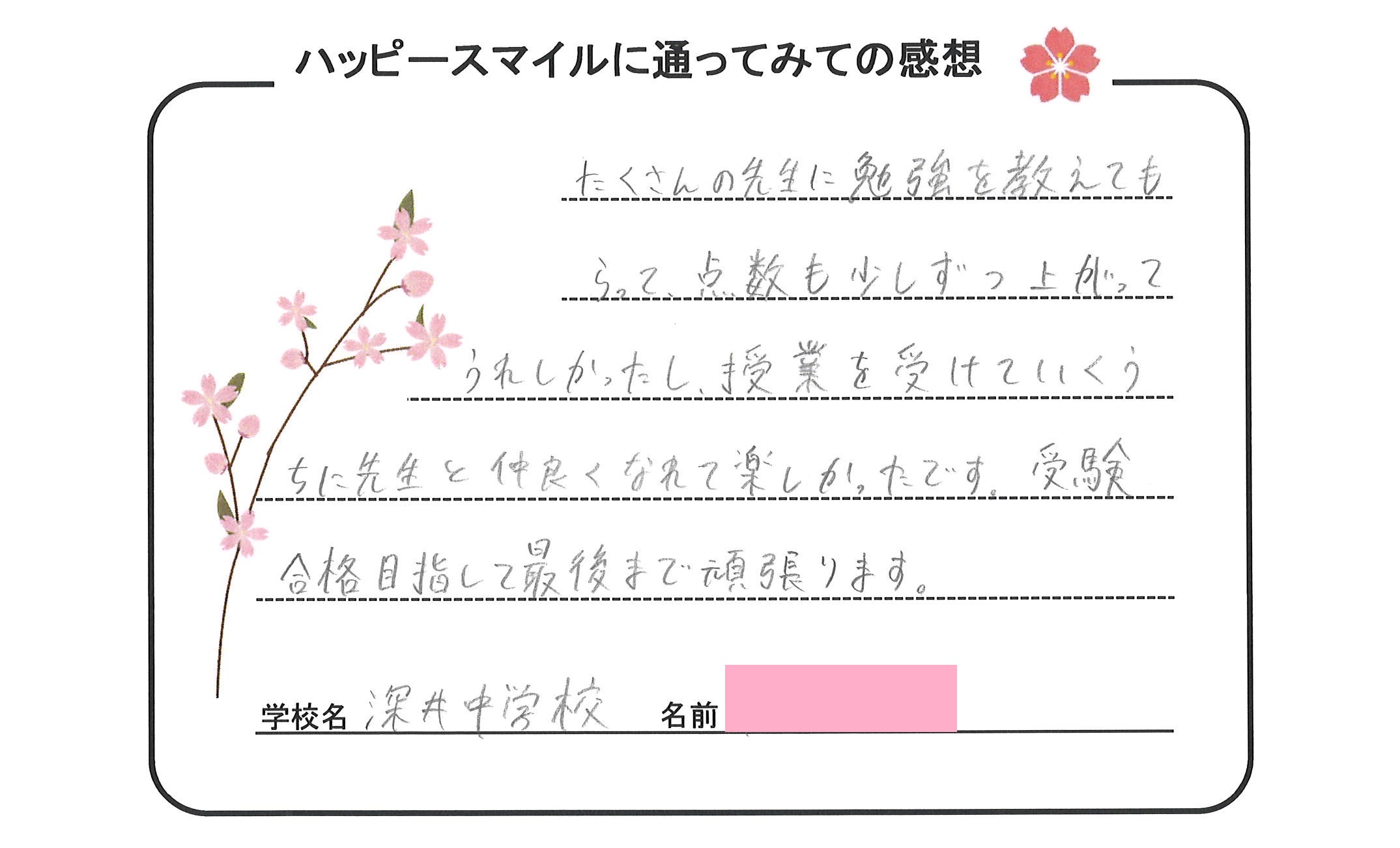 個別指導のハッピースマイルにお寄せ頂きました生徒様の声をご紹介!