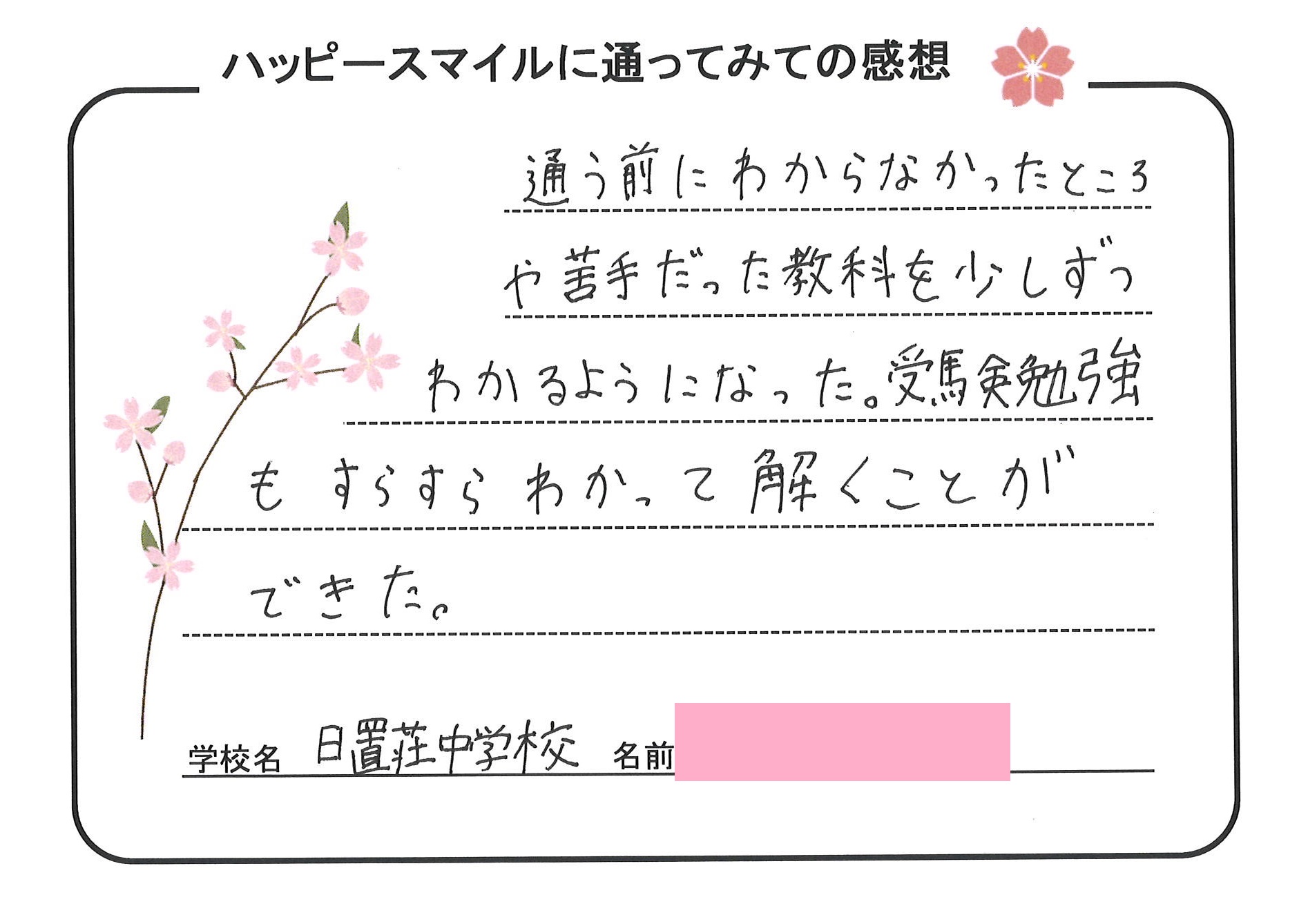 個別指導のハッピースマイルにお寄せ頂きました生徒様の声をご紹介!