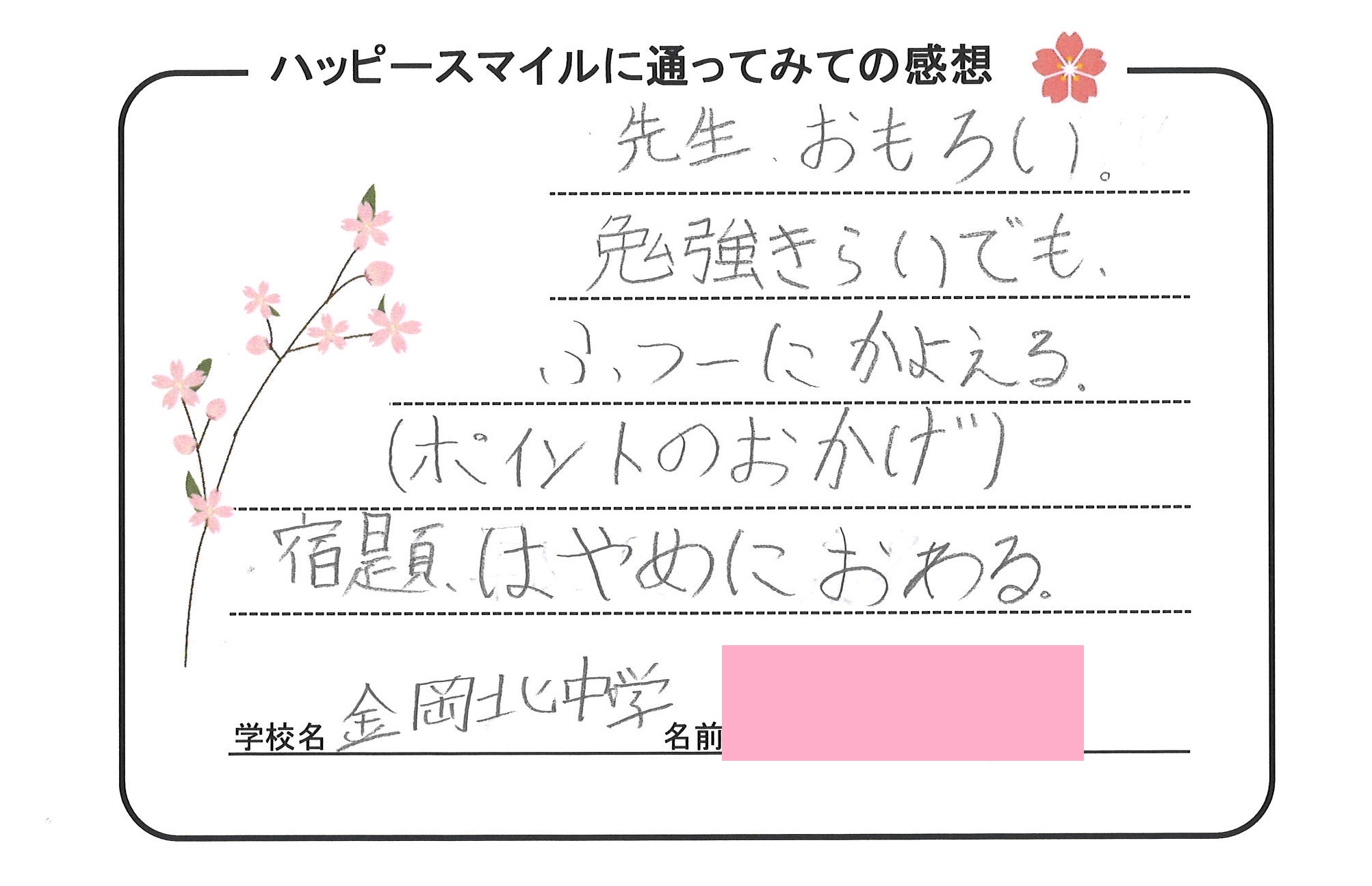 個別指導のハッピースマイルにお寄せ頂きました生徒様の声をご紹介!