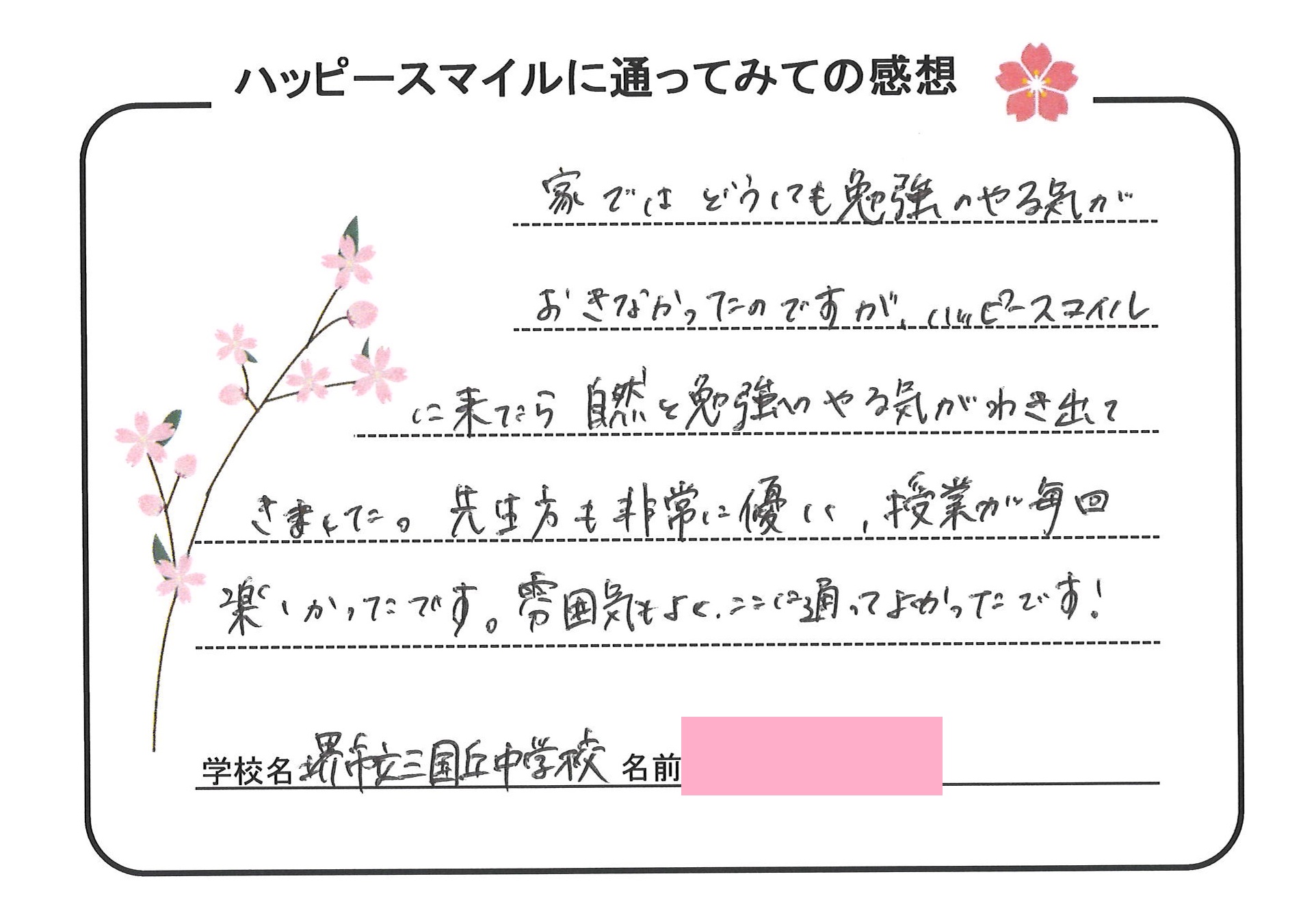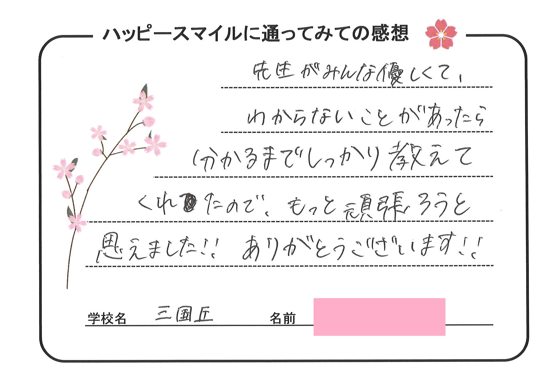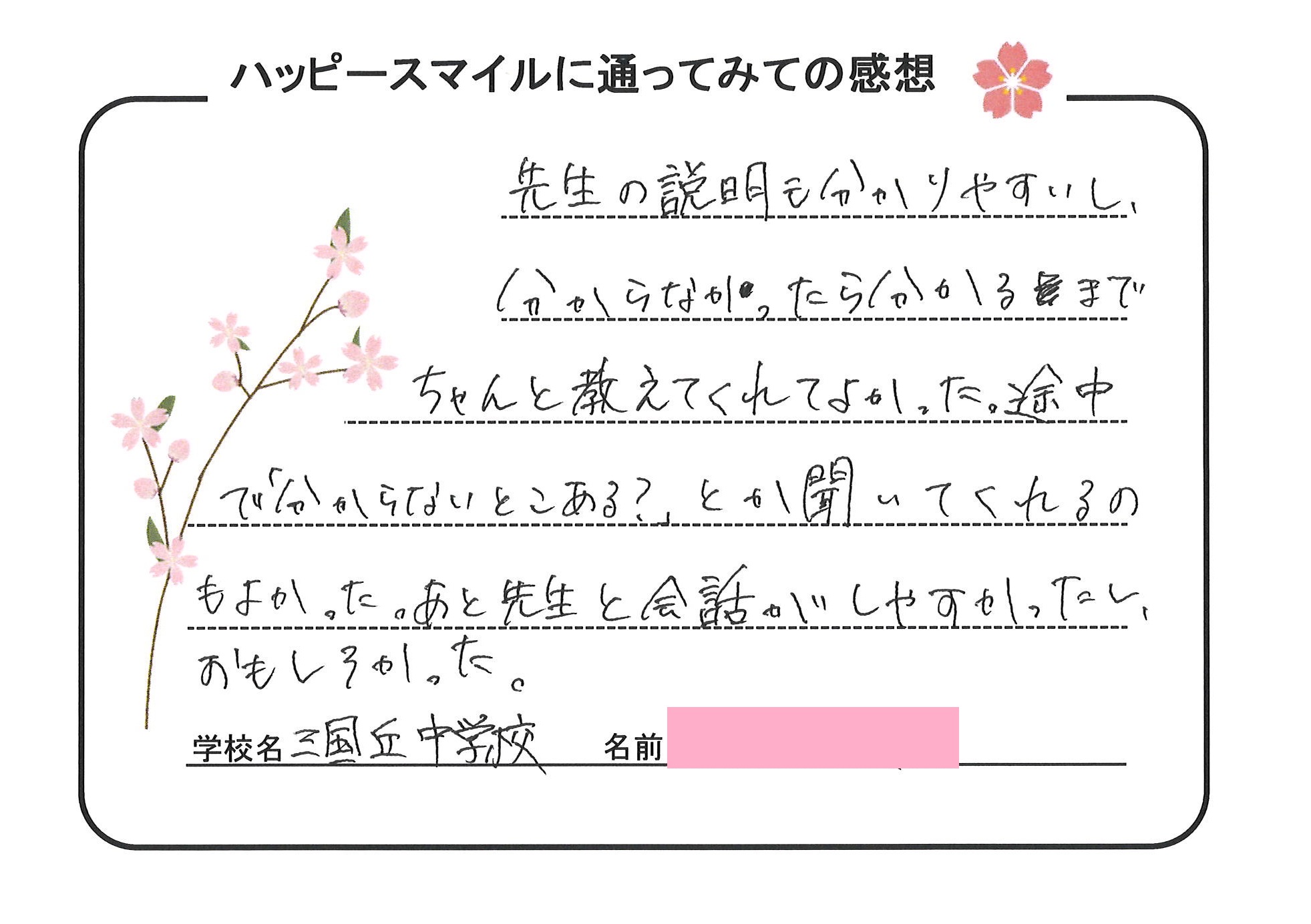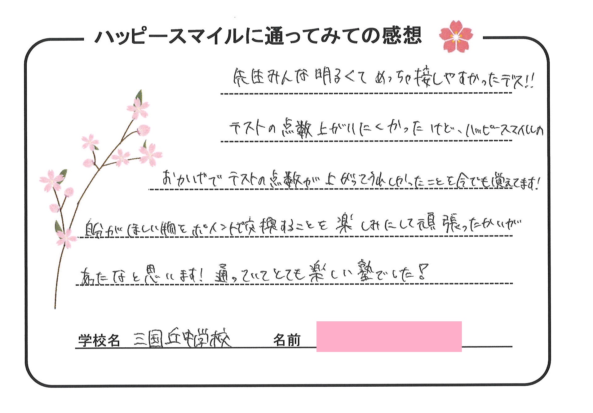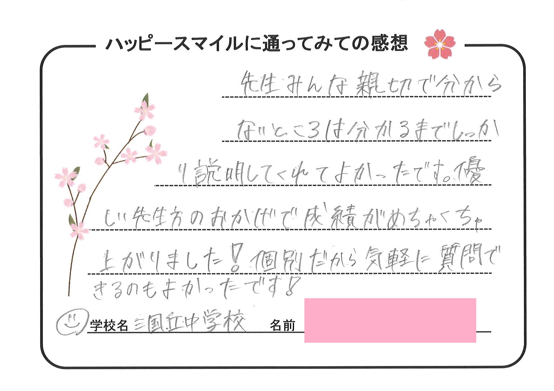 個別指導のハッピースマイルにお寄せ頂きました生徒様の声をご紹介!