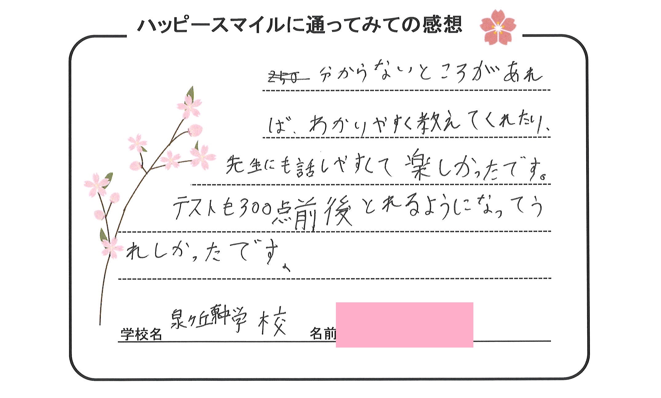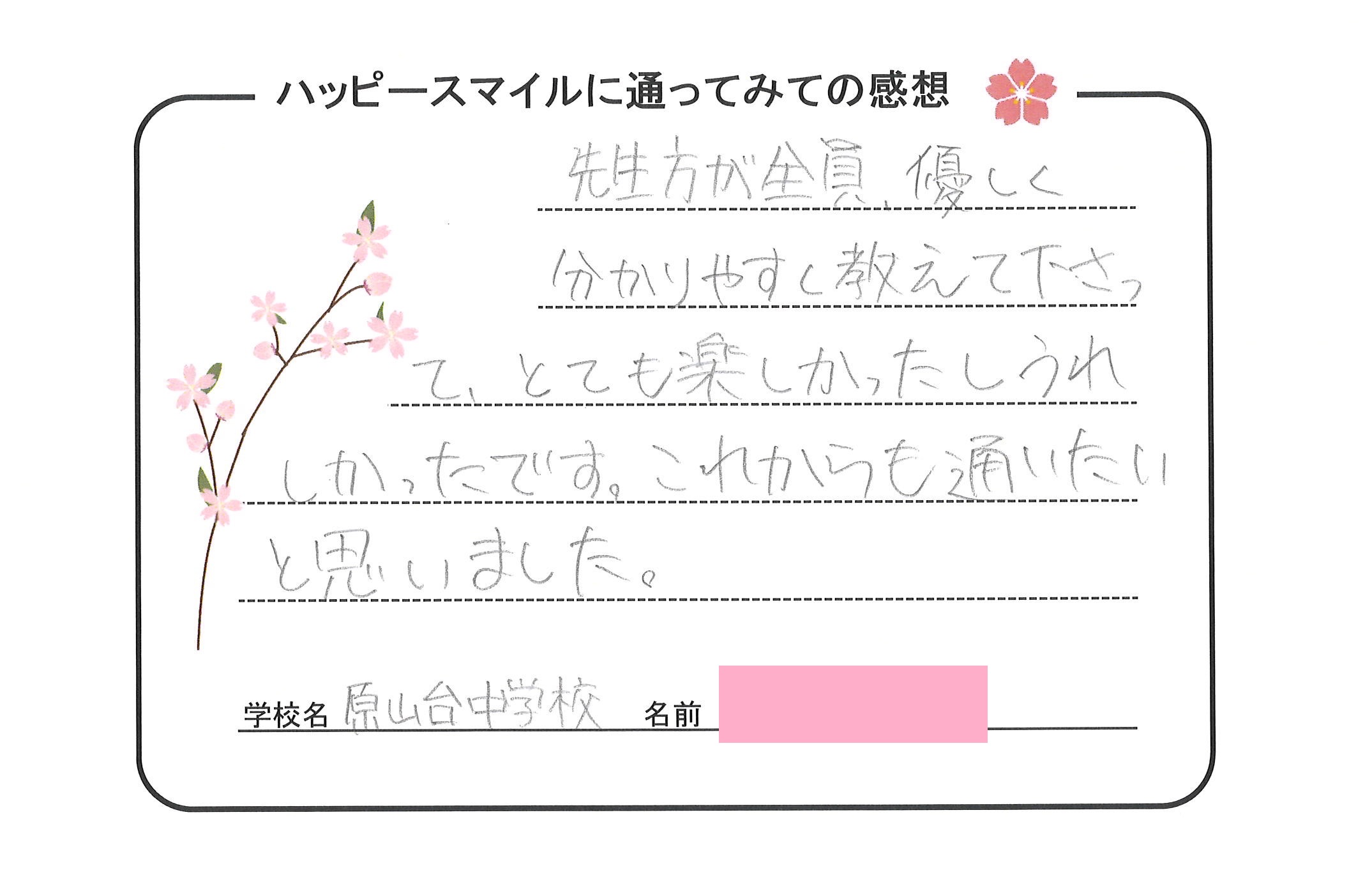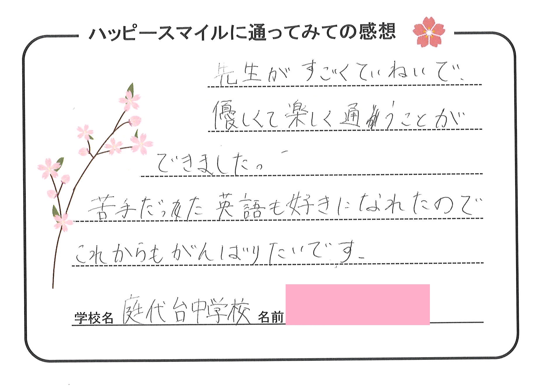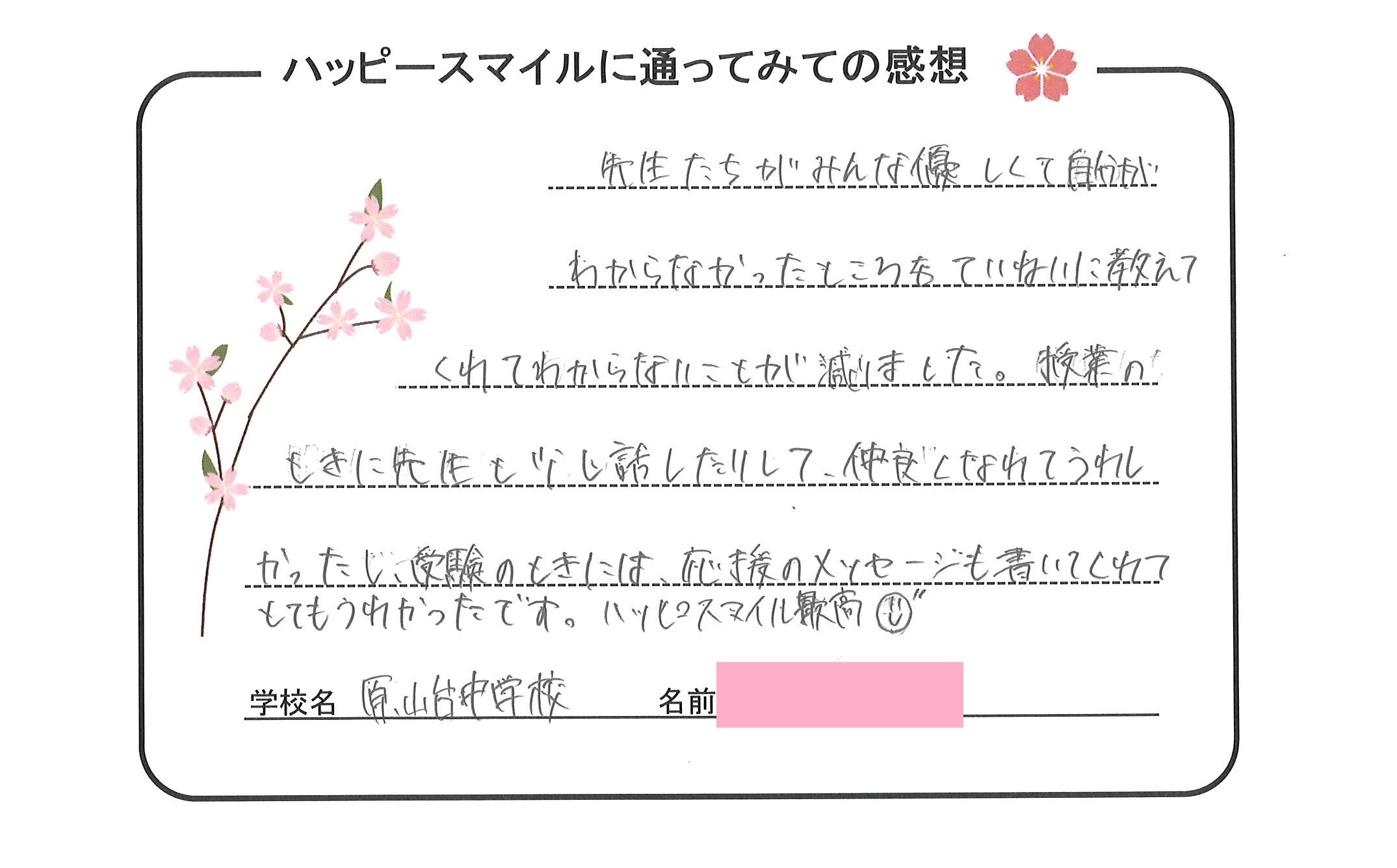 個別指導のハッピースマイルにお寄せ頂きました生徒様の声をご紹介!