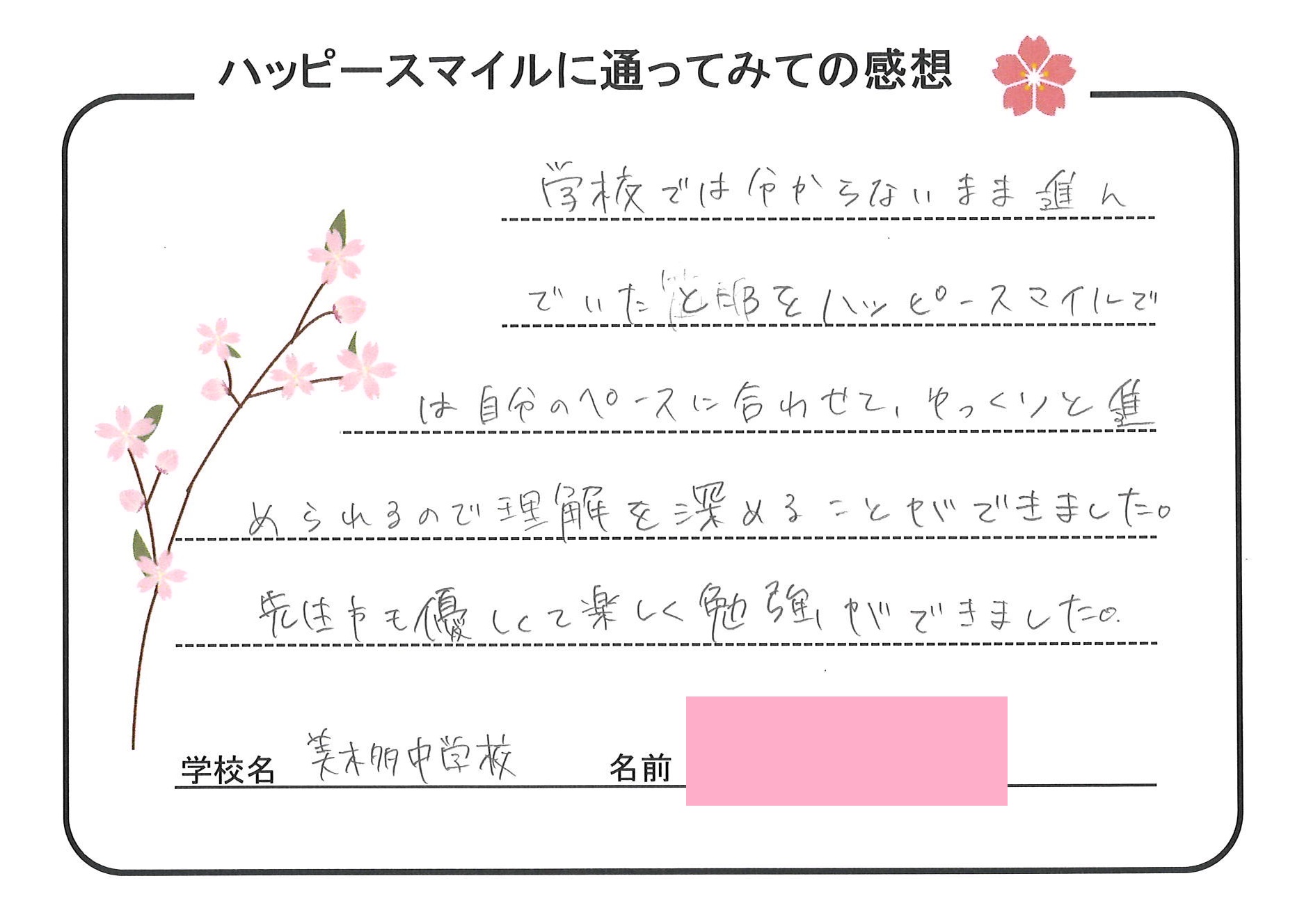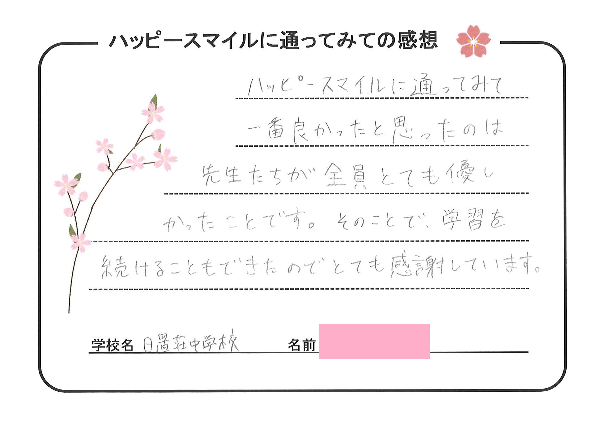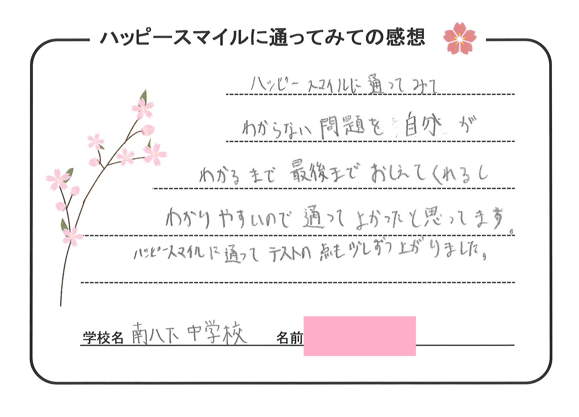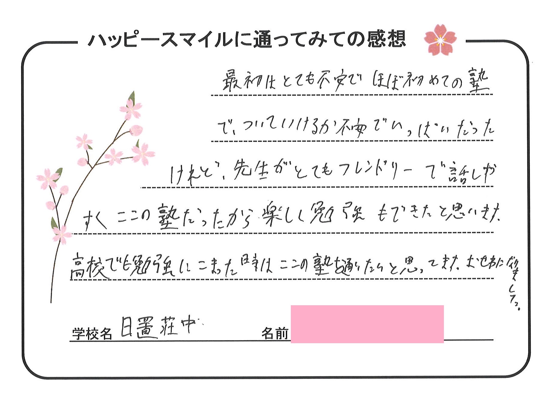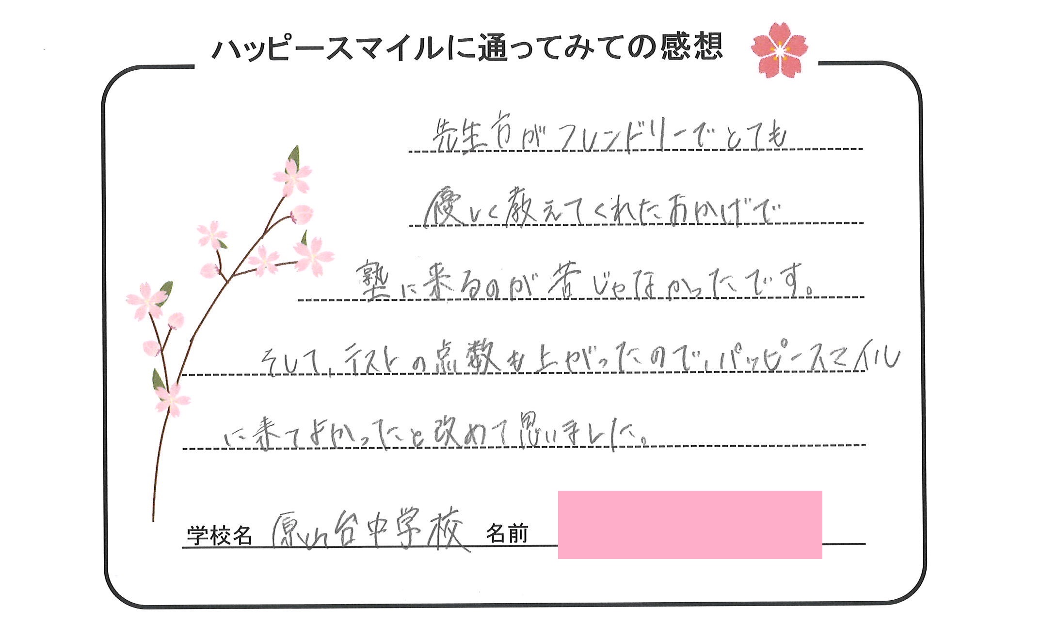 個別指導のハッピースマイルにお寄せ頂きました生徒様の声をご紹介!